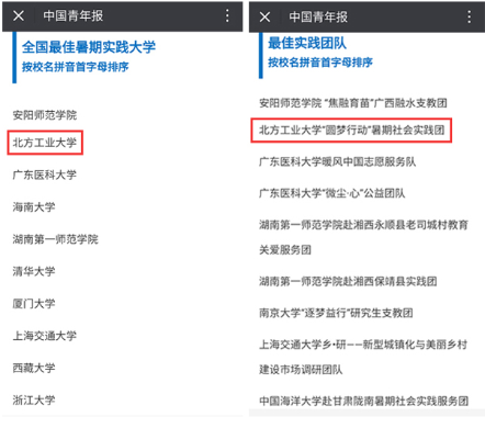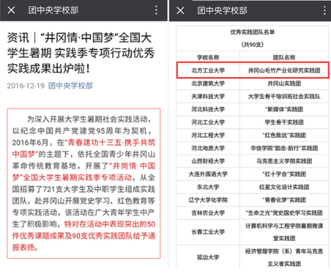 另外,我校暑假期间派往井冈山参加团中央学校部组织的“井冈情?中国梦”全国大学生暑期实践季专项行动的实践团队,也获得了“优秀实践团队”称号。