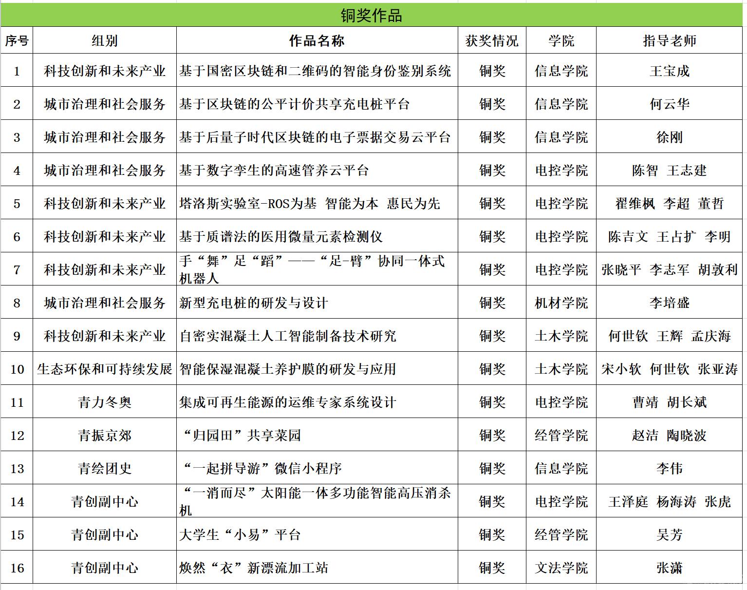 为深入学习领会习近平总书记关于“创新创业创造”重要论述的时代内涵,为首都创新创业高质量发展发掘培育青年后备人才,引导青年学子以优异创新创业成果在建团百年之际向党的二十大献礼,自3月开始,我校积极组织开展“青创北京”2022年“挑战杯”首都大学生创业计划竞赛校内选拔赛。为充分调动学校创新创业教育资源,有效形成工作合力,校团委、教务处、科研院、招生就业处联合组成竞赛组委会,统筹宣传动员、组织申报、专家评审等各项工作。对标“挑战杯”大学生创业计划竞赛国赛、北京市赛章程和赛事结构,校内选拔赛聚焦创新、协调、绿色、开放、共享五大发展理念,设置科技创新和未来产业组、城市治理和社会服务组和综合组三个组别。共收到主赛道参赛作品187项、专项赛道作品45项。经专家评审团评选,最终评选出校内金奖作品19项,银奖作品37项、铜奖作品56项,并择优推选作品参加2022年“挑战杯”首都大学生创业计划竞赛。