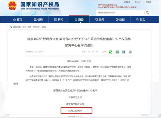 入选第四批高校国家知识产权信息服务中心。
