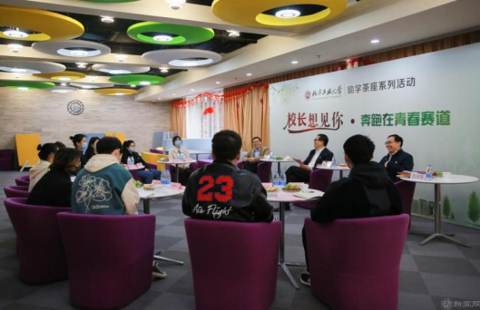 校长张立峰参加“励学茶座-校长想见你”活动,勉励同学们将自身的价值与民族复兴紧密结合起来,为国家和民族的发展奉献聪明才智和青春力量。