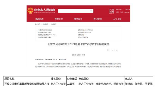 我校作为第一单位申报的“三相交流电机高品质复合控制理论及方法”获2021年度北京市自然科学奖二等奖,电力电子与电气传动团队在国内该领域的领先地位进一步巩固。