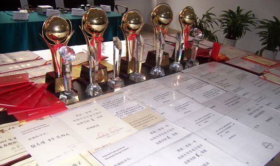 学生竞赛奖杯和证书 指导教师与参赛学生
