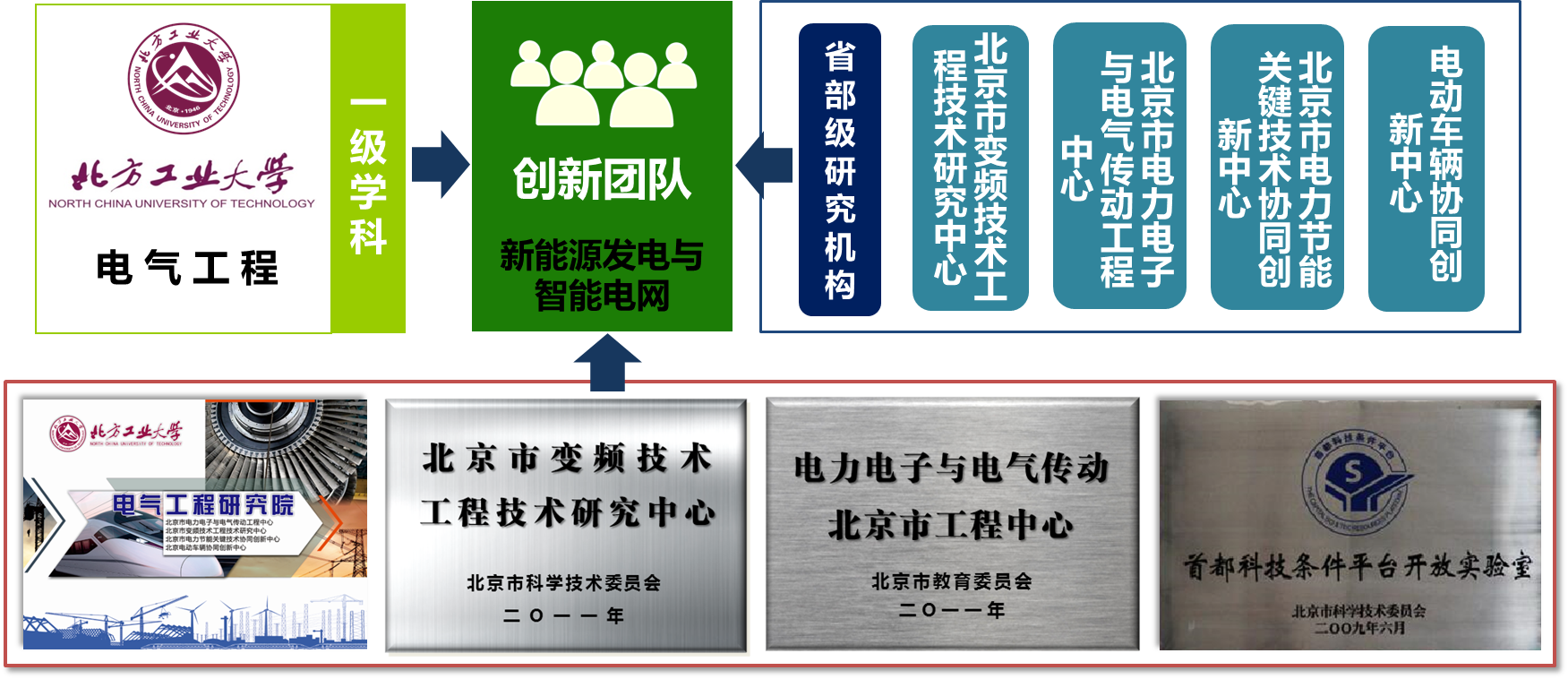 本专业依托的电气工程学科于2011年获得电气工程一级学科硕士学位授予权,建有北京市电力电子与电气传动工程中心、北京市变频技术工程技术研究中心、“2011计划”北京市电力节能关键技术协同创新中心和教育部“北京电动车辆协同创新中心”4个省部级研究中心,围绕先进电机控制、电力电子变换与控制、电力系统运行等方面开展科学研究工作,科研水平在北京高校同类专业中居领先地位。