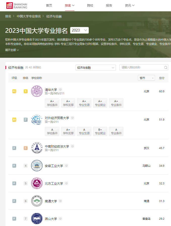 2012年,教育部正式设立经济与金融专业。2016年,我校经济与金融专业招收首届本科生。2020年成为国际商科专业认证ACBSP会员。2021年获评北京市一流本科专业建设点。2021年,软科中国大学专业排名中,我校该专业进入A类评级,排名全国第七。2022年,软科中国大学专业排名中,我校该专业继续保持全国第七。2023年,软科中国大学专业排名中,我校该专业晋级为全国第五。