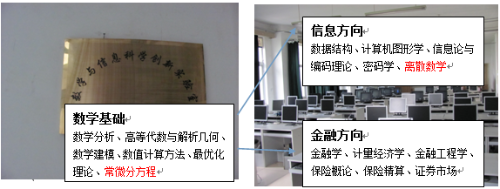 本专业形成了信息方向和金融方向的专业特色,重视理论与实践相结合,还开设数学软件(Matlab、mathematic、lingo)、C/C++语言、计算机网络、金融学、数据分析等课程,以及课程设计与毕业设计等实践环节,传授运用计算机快速、有效地解决信息和金融领域实际问题的能力。