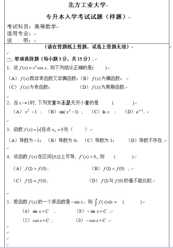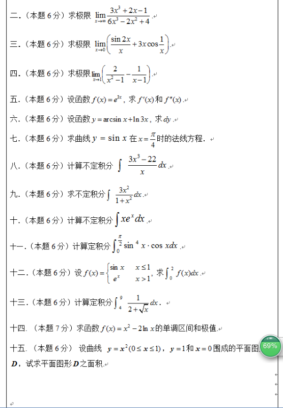 高等数学参考题目
