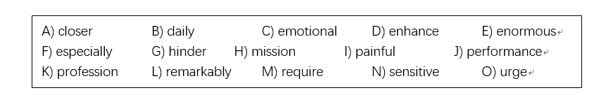 Writing ability is like strength training. Writing needs to be done __37__, just like exercise; just as muscles grow stronger with exercise, writing skills improve quickly with writing practice. I often see a rise in student confidence and __38__ after only a few weeks of journal writing.